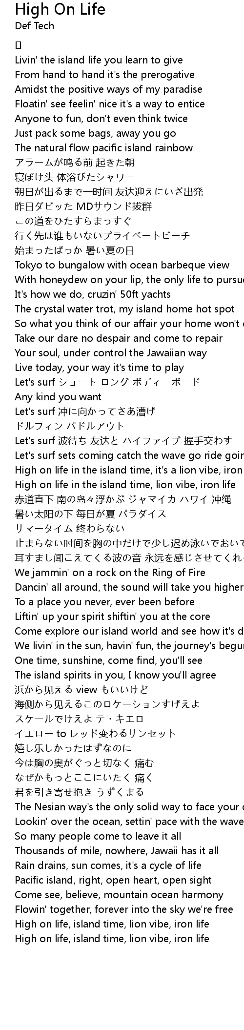| High on life in the island time, lion vibe, iron life | |
