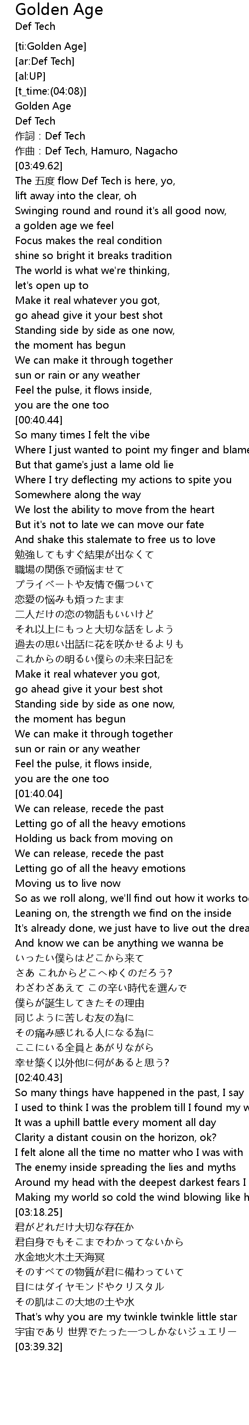 | [03:40.68] | Golden Age |