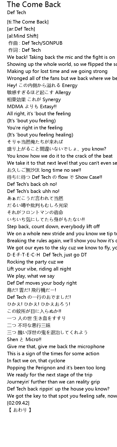 | [00:58.93] | Def Tech's back oh no! |