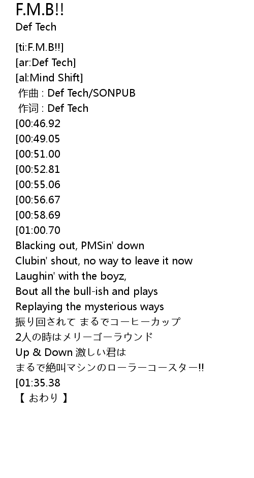 | [00:00.00] | 作曲 : Def Tech/SONPUB |