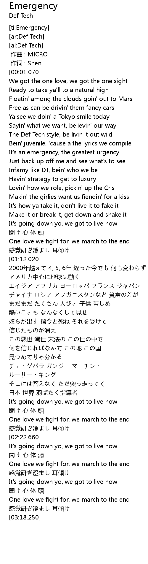 | [00:31.940] | The Def Tech style, be livin it out wild |