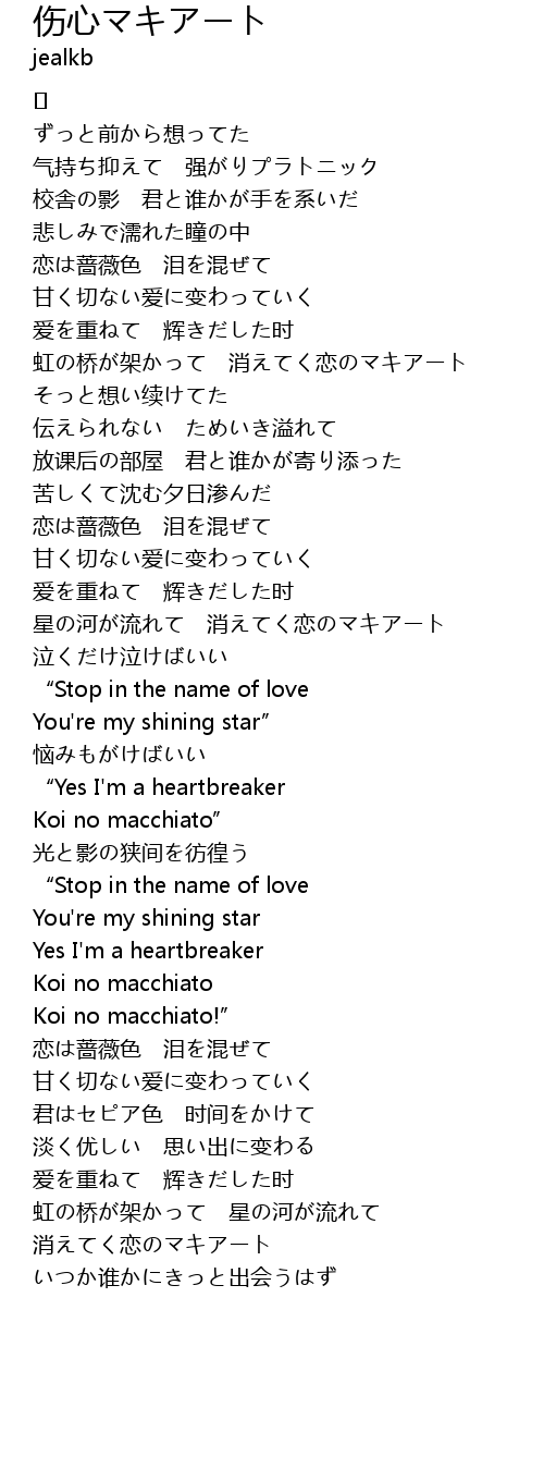 | 虹の桥が架かって 消えてく恋のマキアート | |