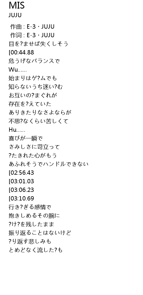 | [00:00.00] | zuò qǔ : E3 JUJU |