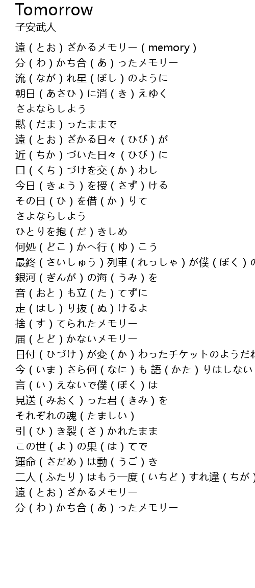 | [00:28.40] | 遠(とお)ざかるメモリー(memory) |