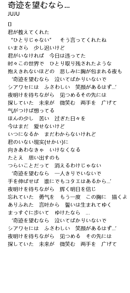 | ‘奇迹を望むなら 泣いてばかりいないで | |