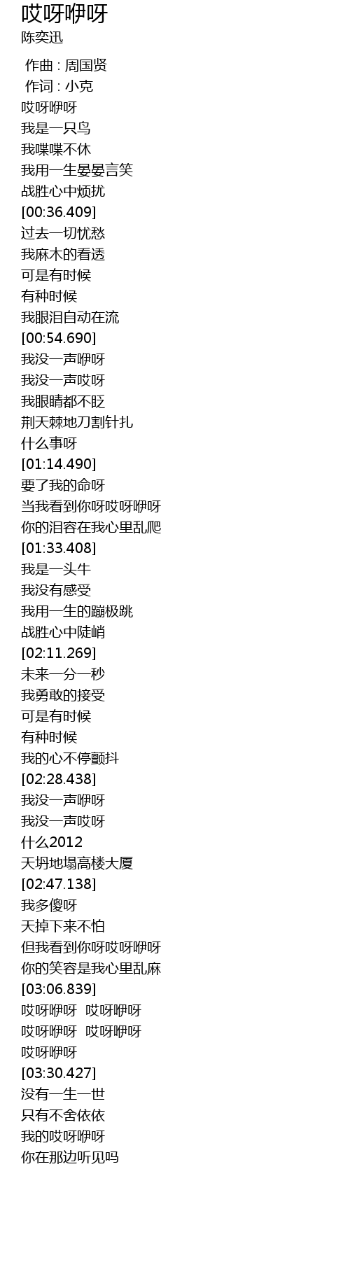 | [03:14.800] | 哎呀咿呀 哎呀咿呀 |