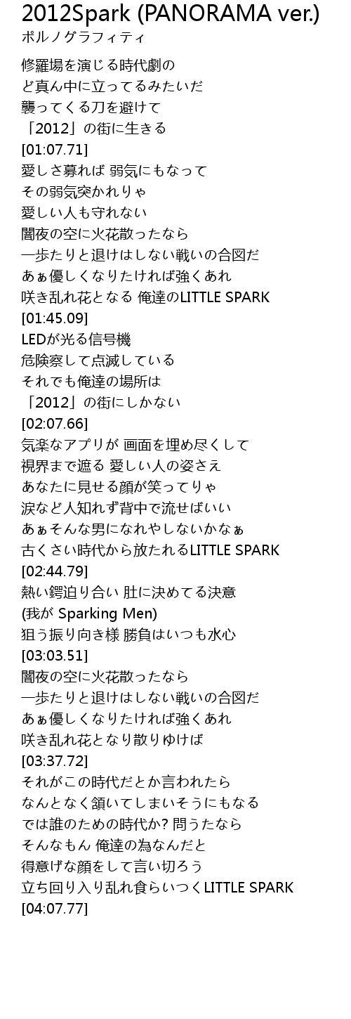 | [02:37.65] | 古くさい時代から放たれるLITTLE SPARK |