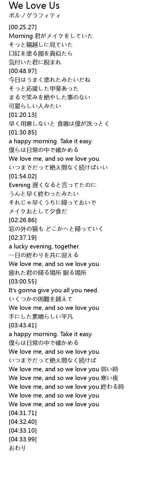 | [04:16.22] | We love me, and so we love you 終わる時 |