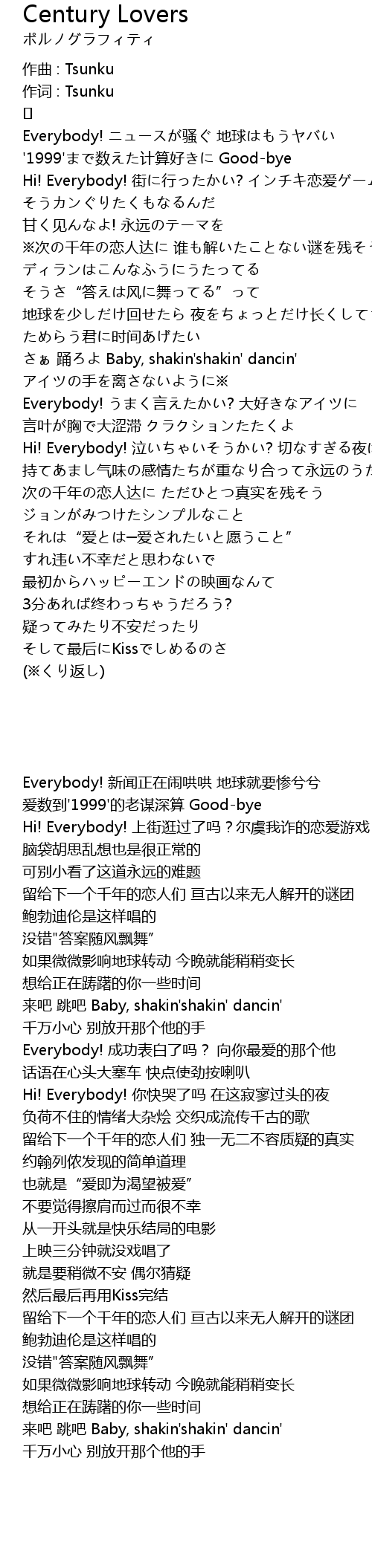 | Song | Century Lovers |