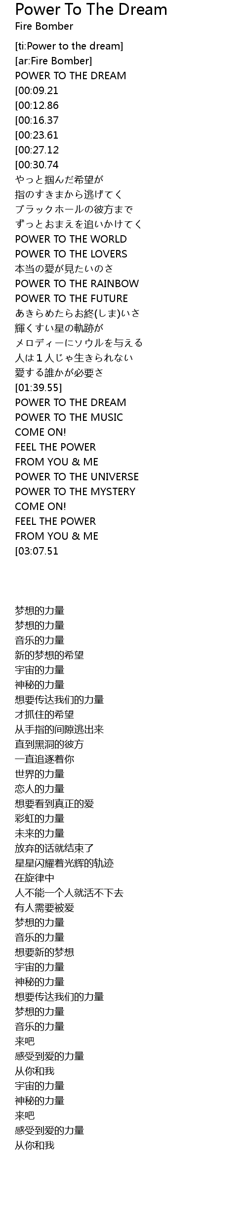 [ti:Power to the dream] |