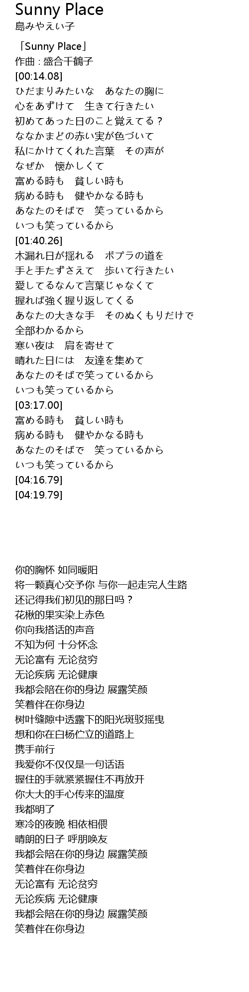 | [00:16.08] | ひだまりみたいな あなたの胸に |