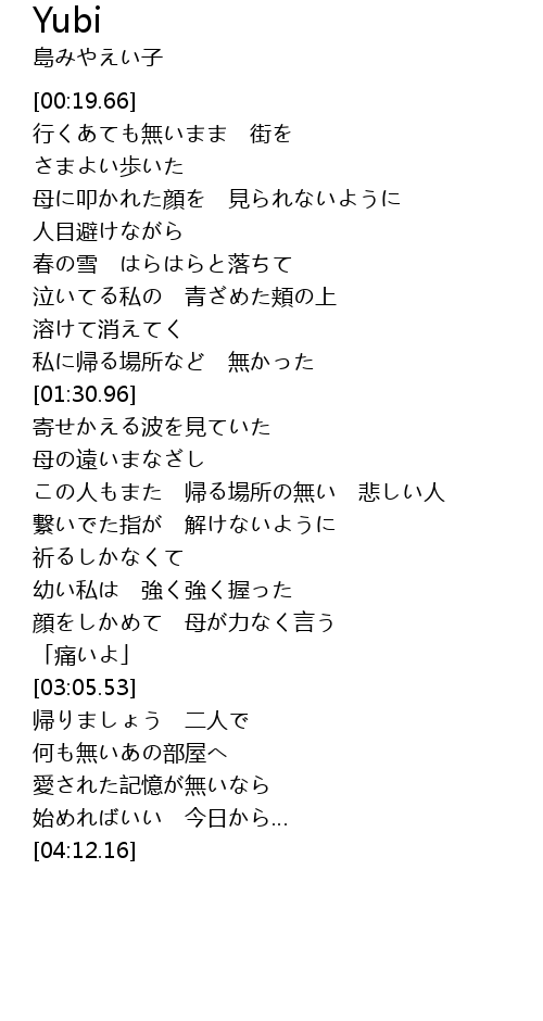 | [02:04.15] | この人もまた 帰る場所の無い 悲しい人 |