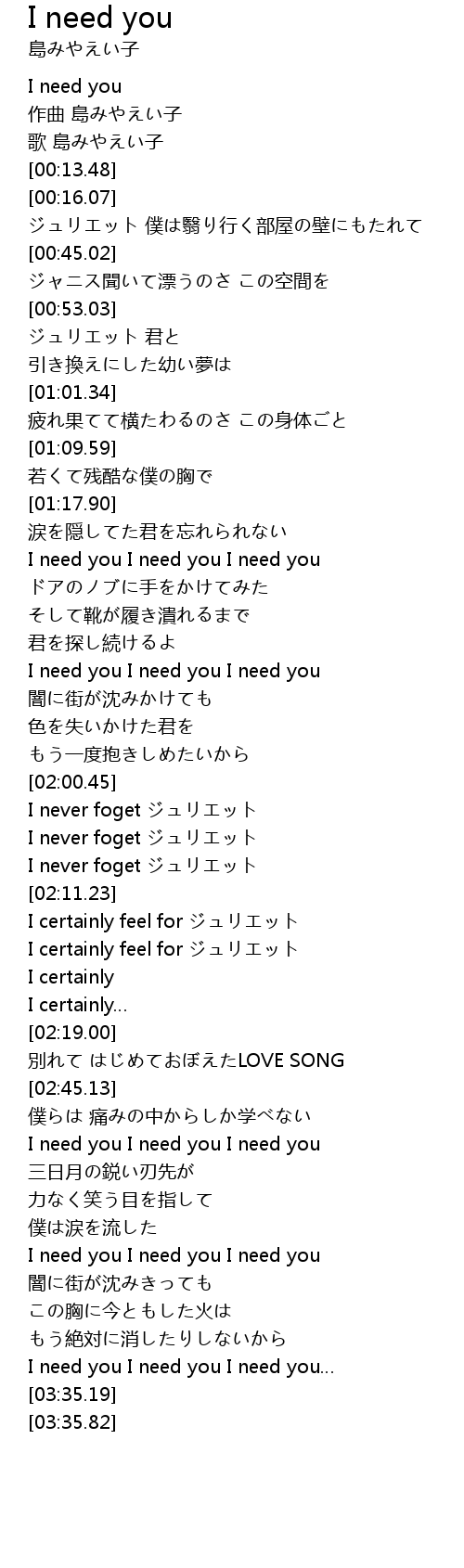 [00:39.15] ジュリエット 僕は翳り行く部屋の壁にもたれて