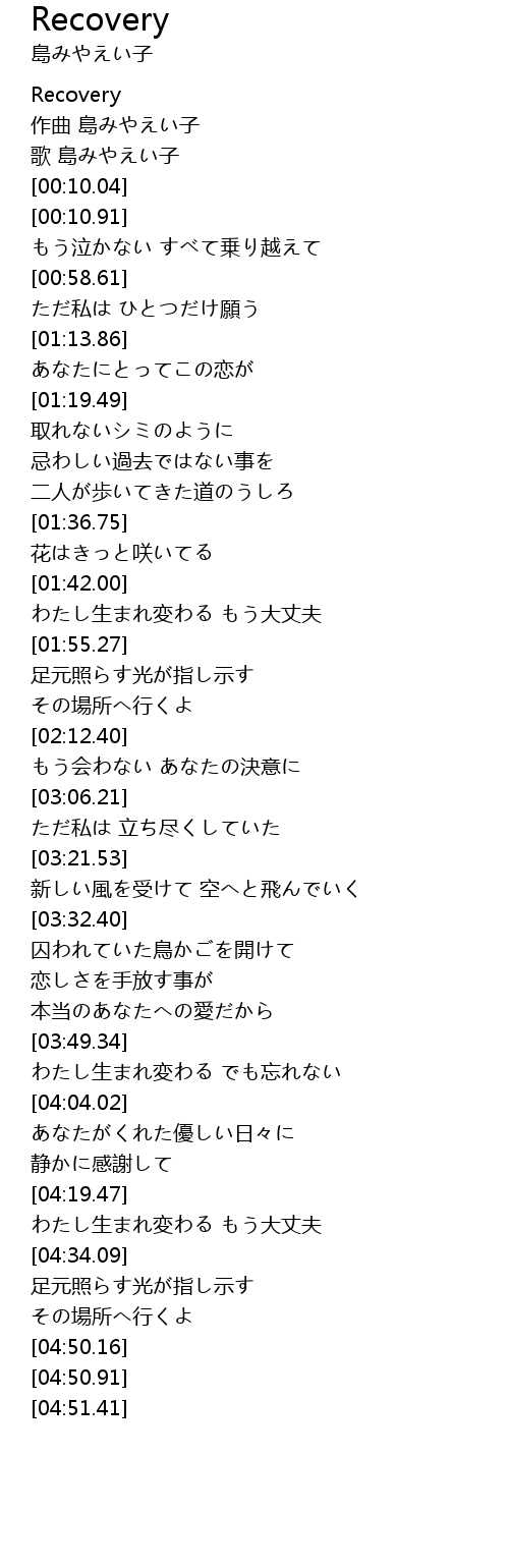 | [04:23.53] | わたし生まれ変わる もう大丈夫 |