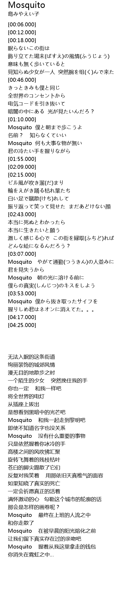 | [03:31.000] | Mosquito 朝の光に溶ける前に |