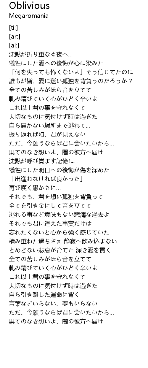 | [02:58.96] | 果てのなき想いよ、闇の彼方へ届け |