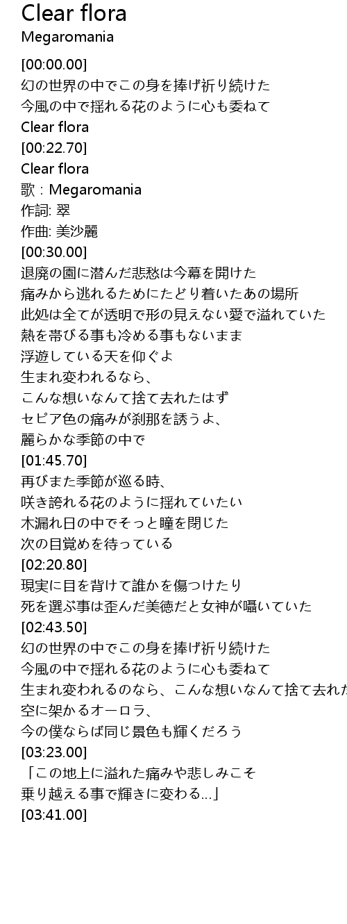 | [02:44.70] | 幻の世界の中でこの身を捧げ祈り続けた |