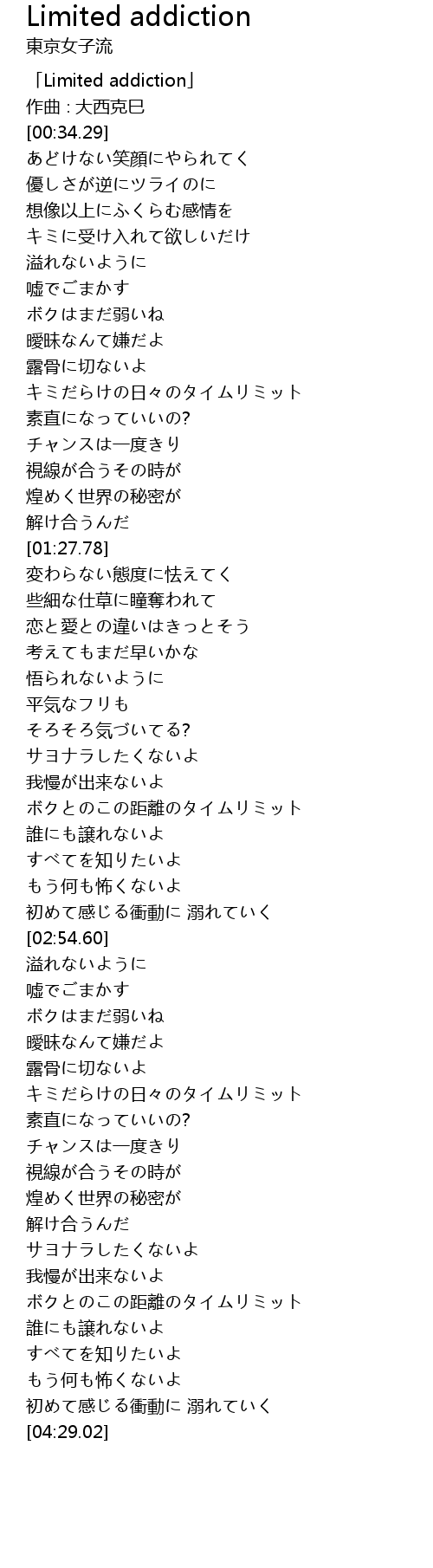 | [00:01.29] | 「Limited addiction」 |