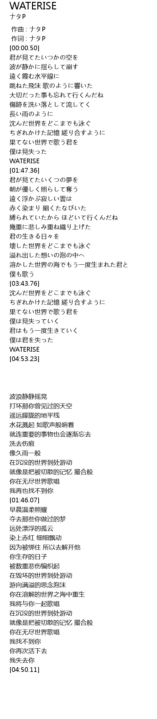 | [04:15.43] | 沈んだ世界をどこまでも泳ぐ |