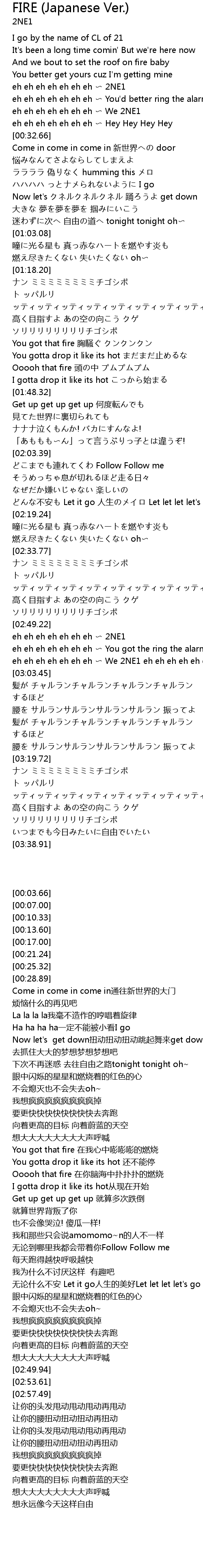 | [02:49.94] | eh eh eh eh eh eh eh 〜 2NE1 |