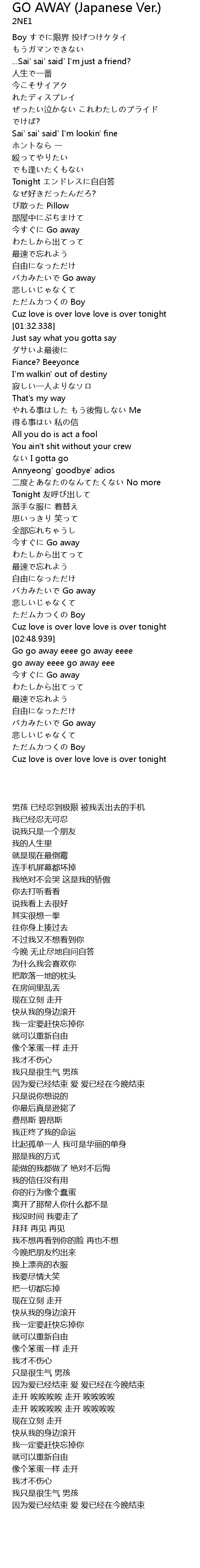 | [02:33.309] | バカみたいで Go away |