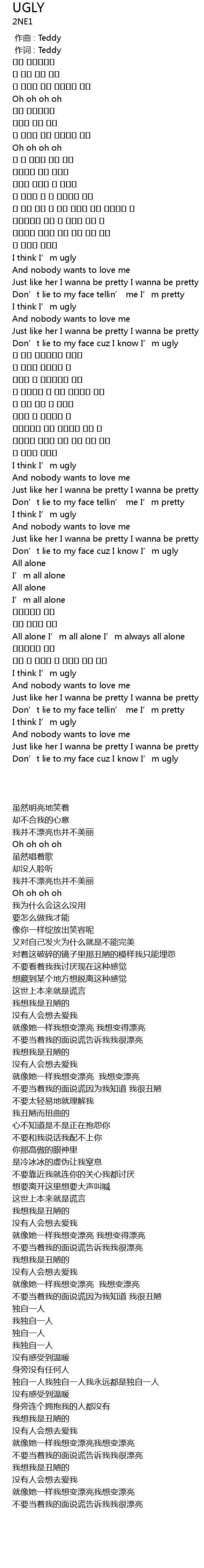 | [02:57.250] | Don' t lie to my face cuz I know I' m ugly |