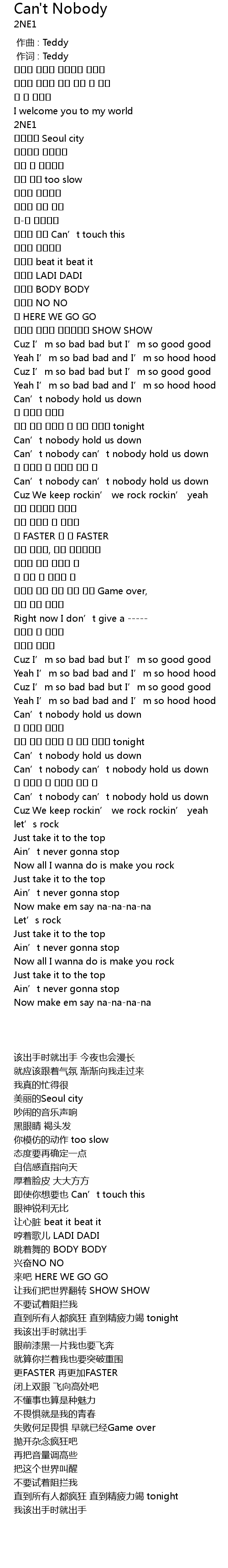 | [01:22.100] | Can' t nobody can' t nobody hold us down |