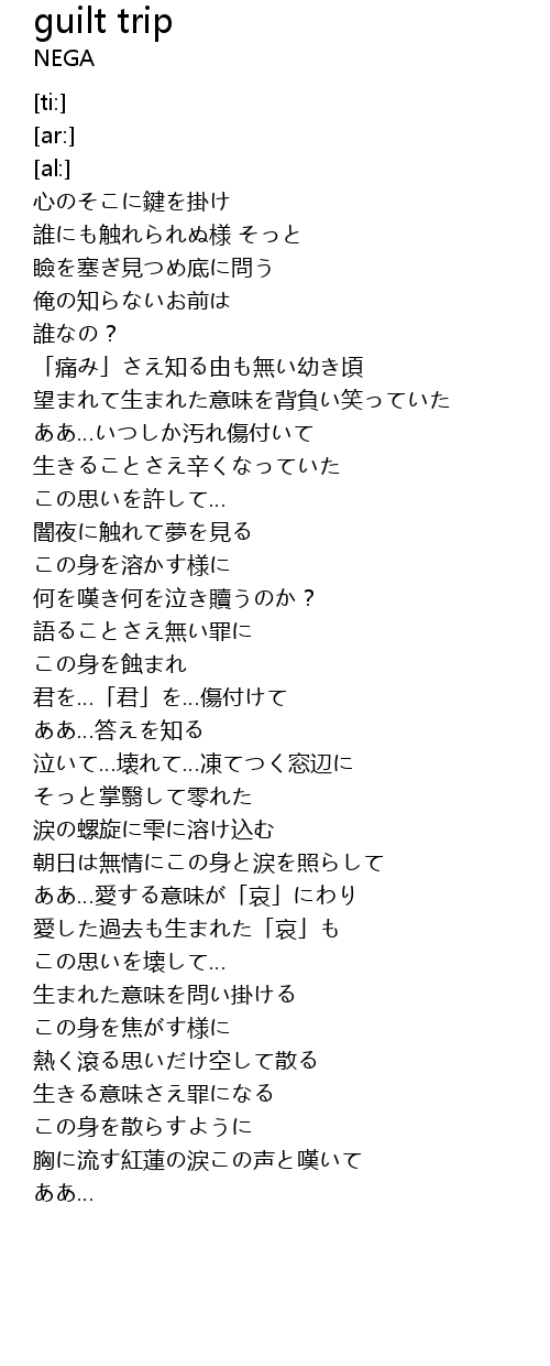 | [03:06.19] | 何を嘆き何を泣き贖うのか? |