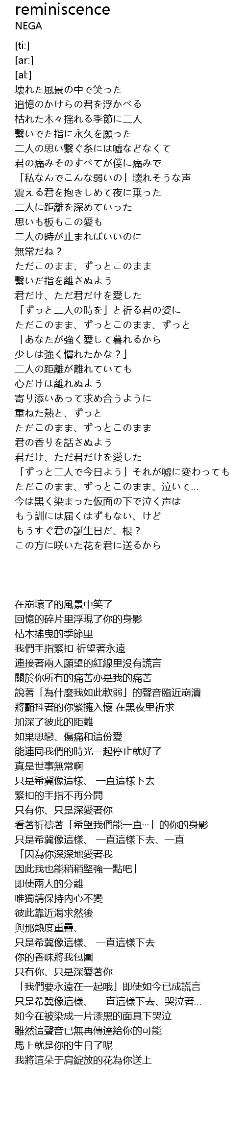 | Song | reminiscence |