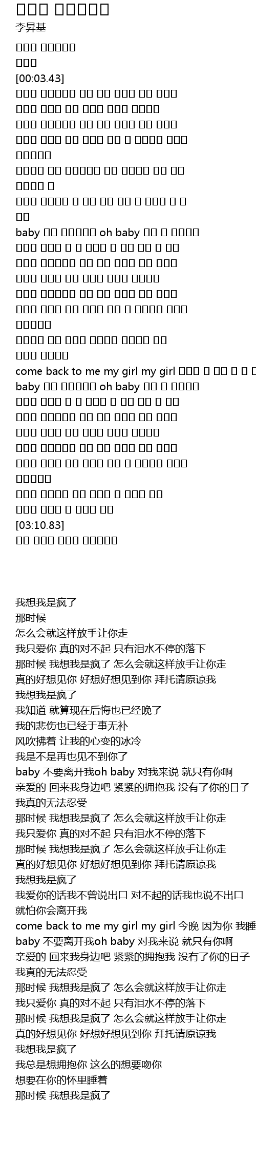 baby 나를 떠나가지마 oh baby 나는 너 하나뿐야 |