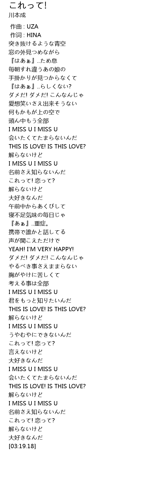 | [01:00.41] | THIS IS LOVE! IS THIS LOVE? |