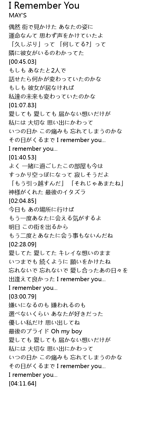 | [02:55.67] | I remember you... |