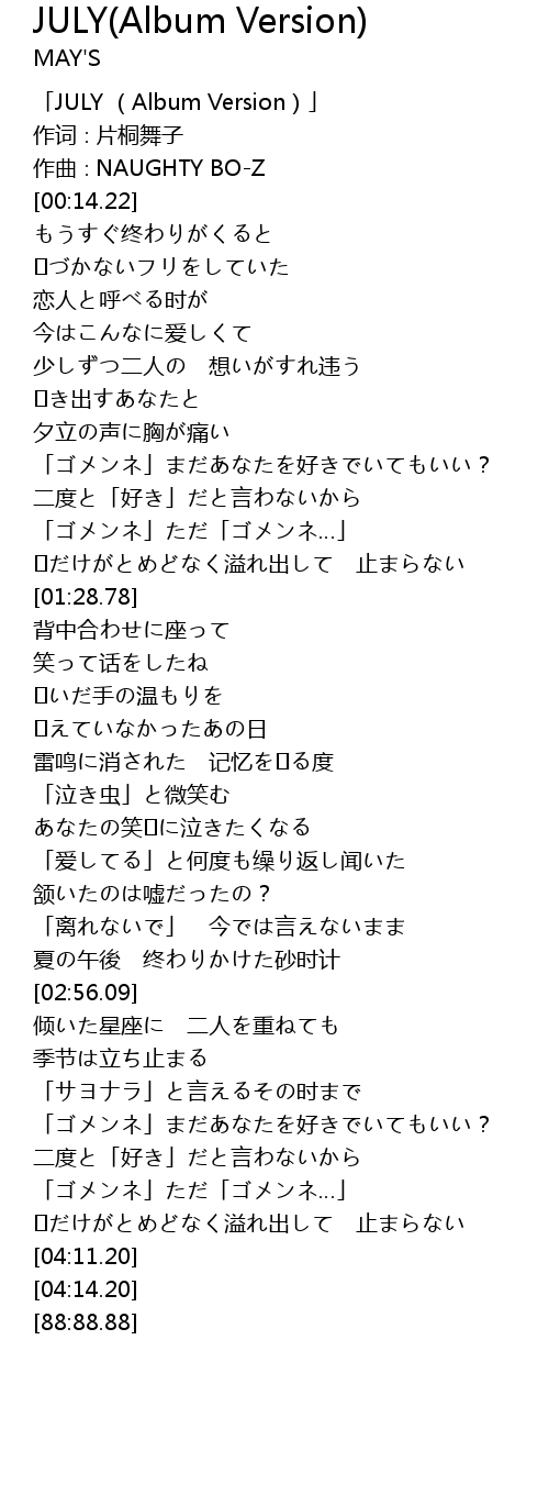 | [00:59.65] | 「ゴメンネ」まだあなたを好きでいてもいい? |
