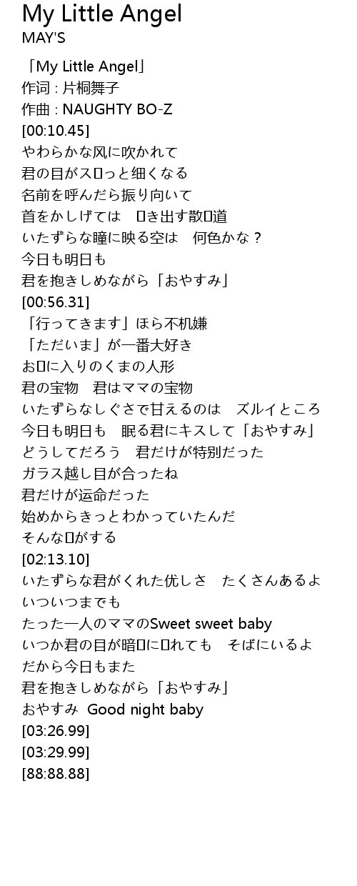 | [01:12.98] | 君の宝物 君はママの宝物 |