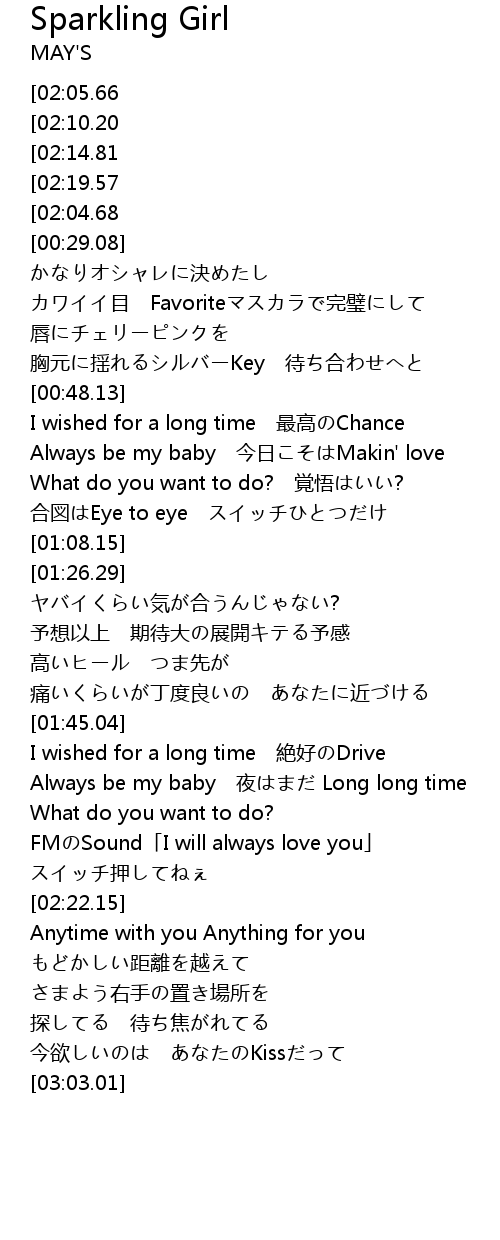 | [01:50.63] | Always be my baby 夜はまだ Long long time |