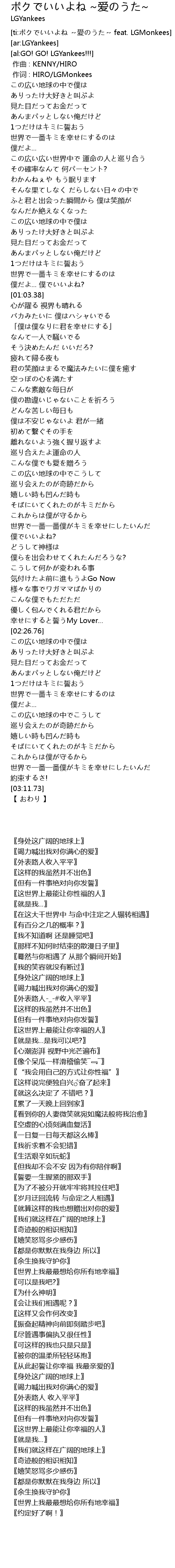 | [ti:ボクでいいよね ~愛のうた~ feat. LGMonkees] | |