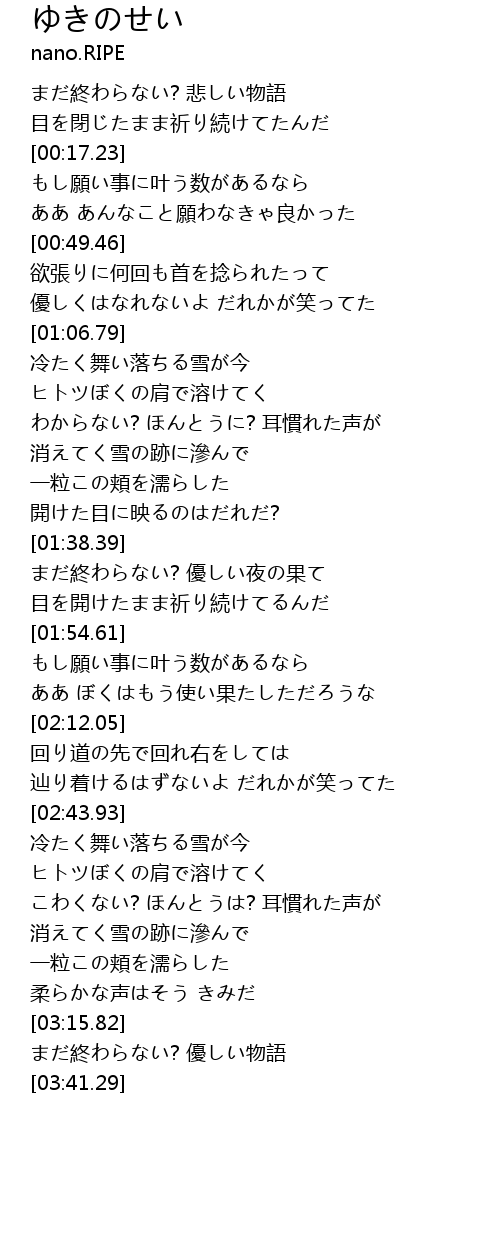 | [00:01.12] | まだ終わらない? 悲しい物語 |
