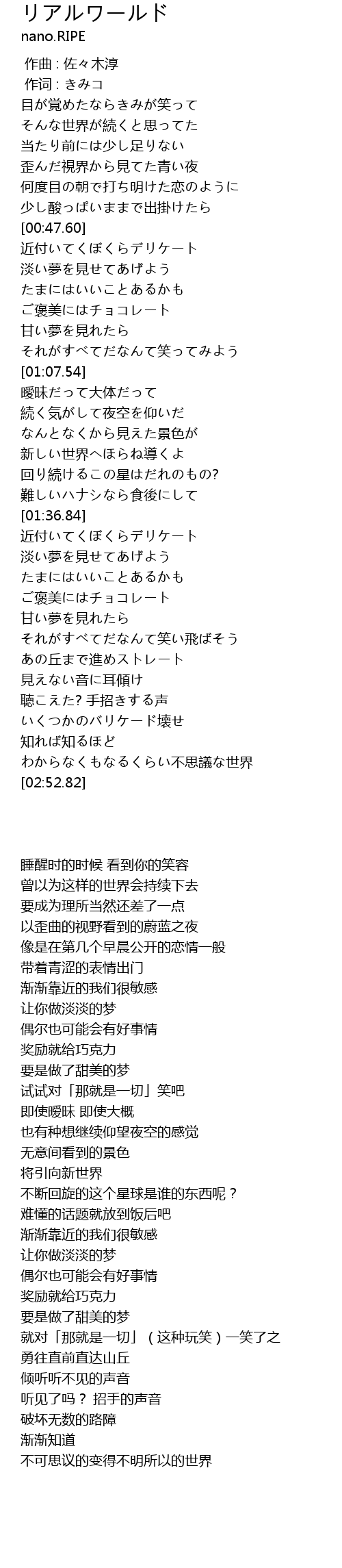 | [02:48.69] | わからなくもなるくらい不思議な世界 |
