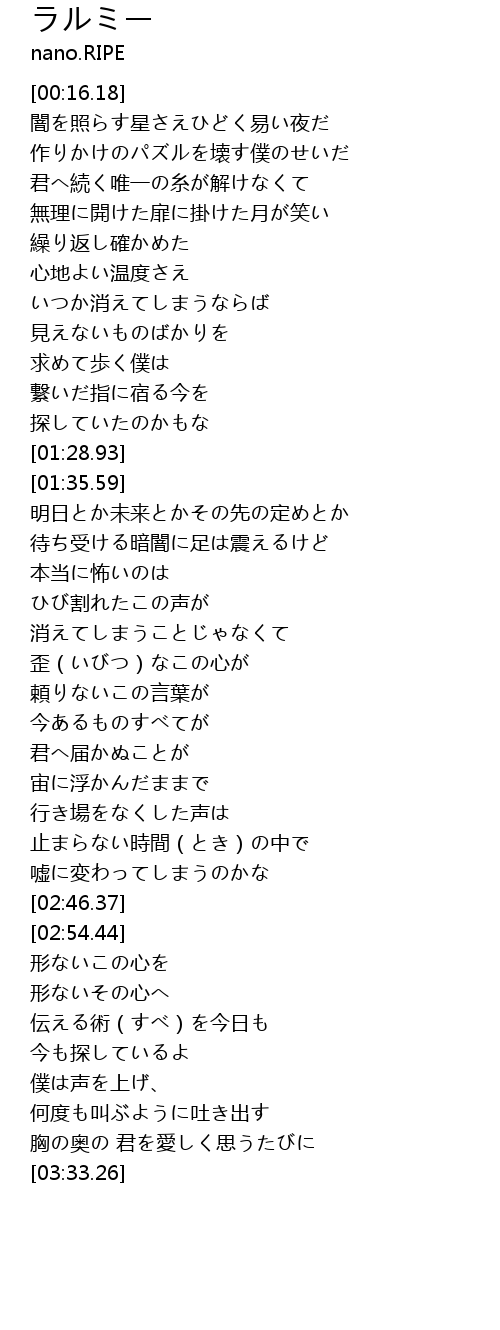 | [03:16.12] | 何度も叫ぶように吐き出す |