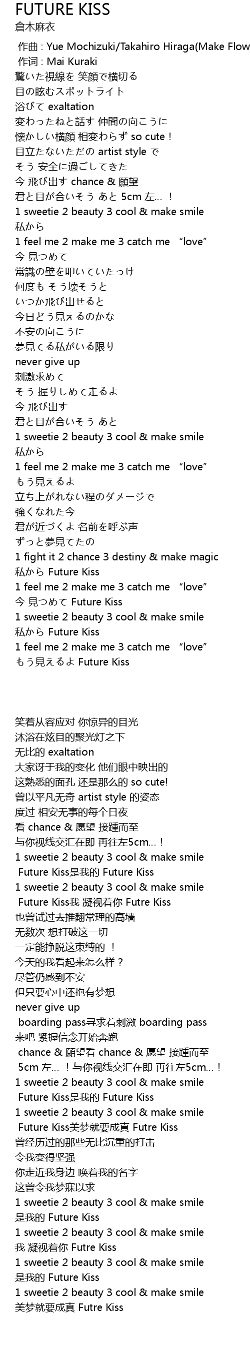 | [02:28.150] | 1 feel me 2 make me 3 catch me “love” |