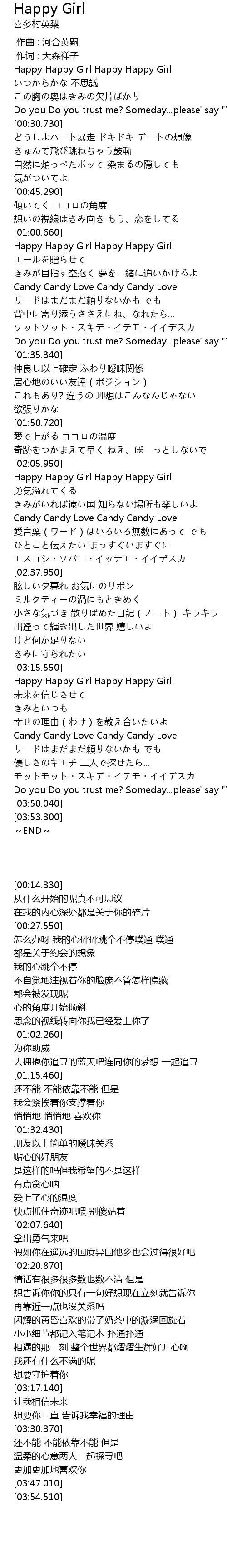 | [00:14.330] | Happy Happy Girl Happy Happy Girl |