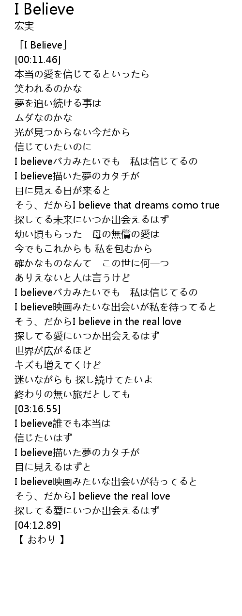 | [00:03.46] | I Believe |