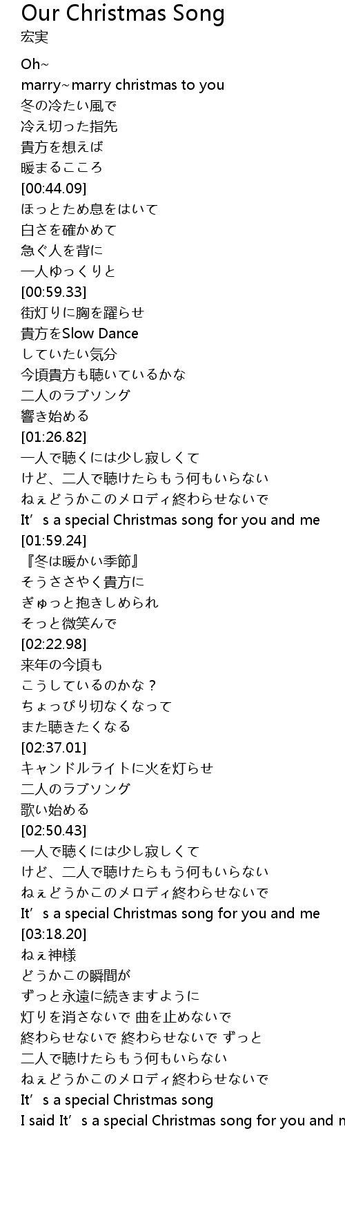 | [03:13.17] | It’s a special Christmas song for you and me |