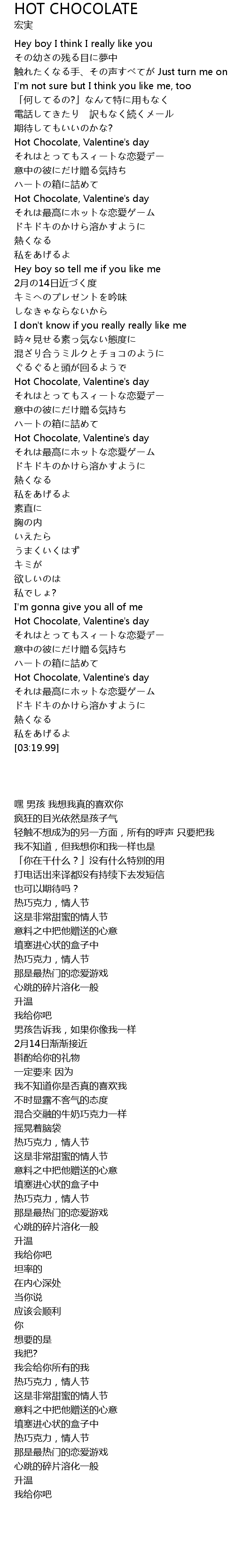 | [00:39.97] | Hot Chocolate, Valentine' s day |