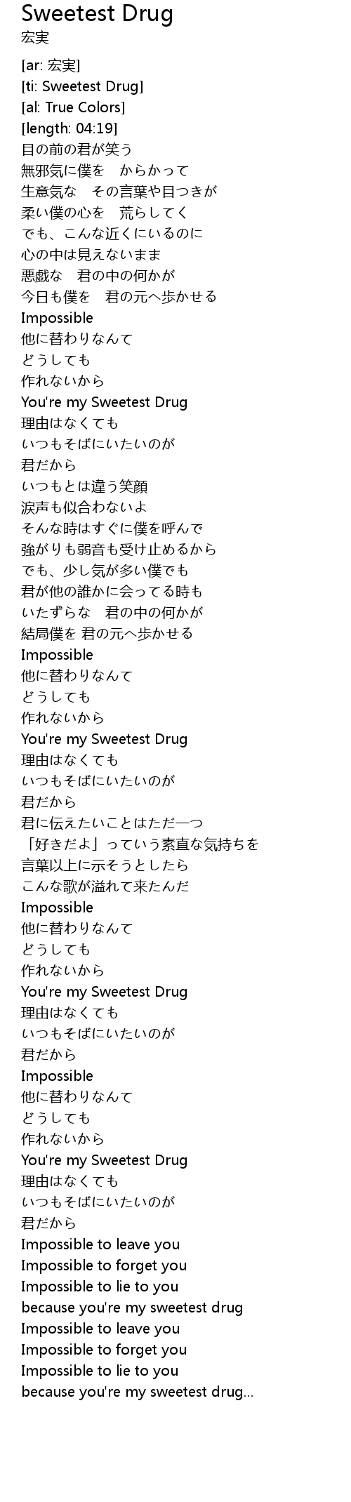 | [03:19.47] | You're my Sweetest Drug |
