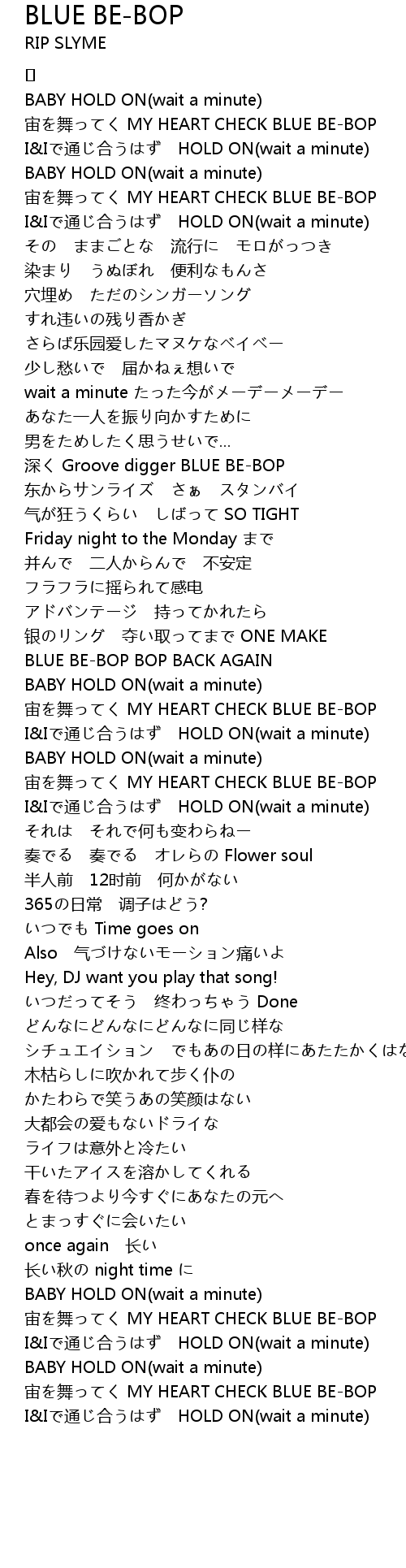 | BABY HOLD ON(wait a minute) | |