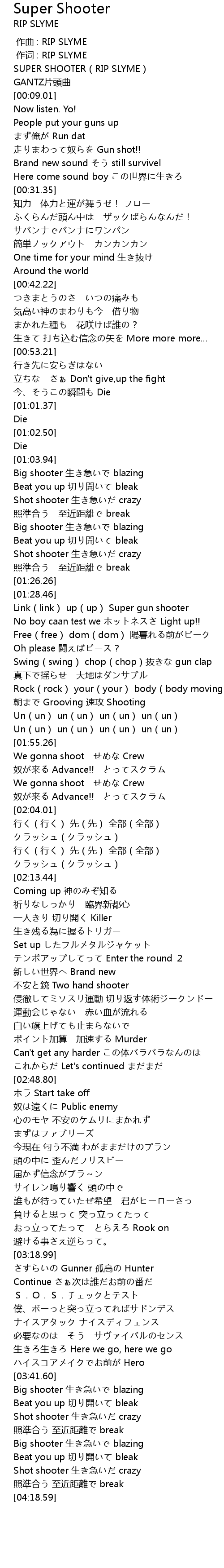 | [00:00.01] | SUPER SHOOTER(RIP SLYME) |