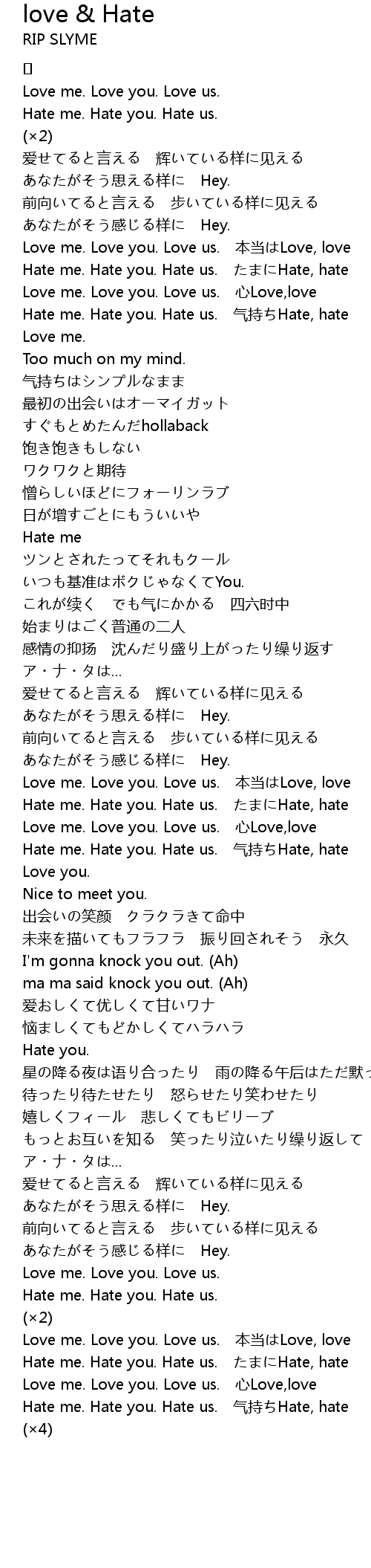 | Hate me. Hate you. Hate us. たまにHate, hate | |