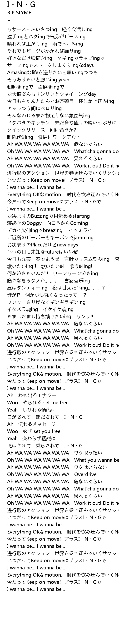 | 今日も充实 奏でようぜ 言叶でリズム刻みing 俺は歌いing | |