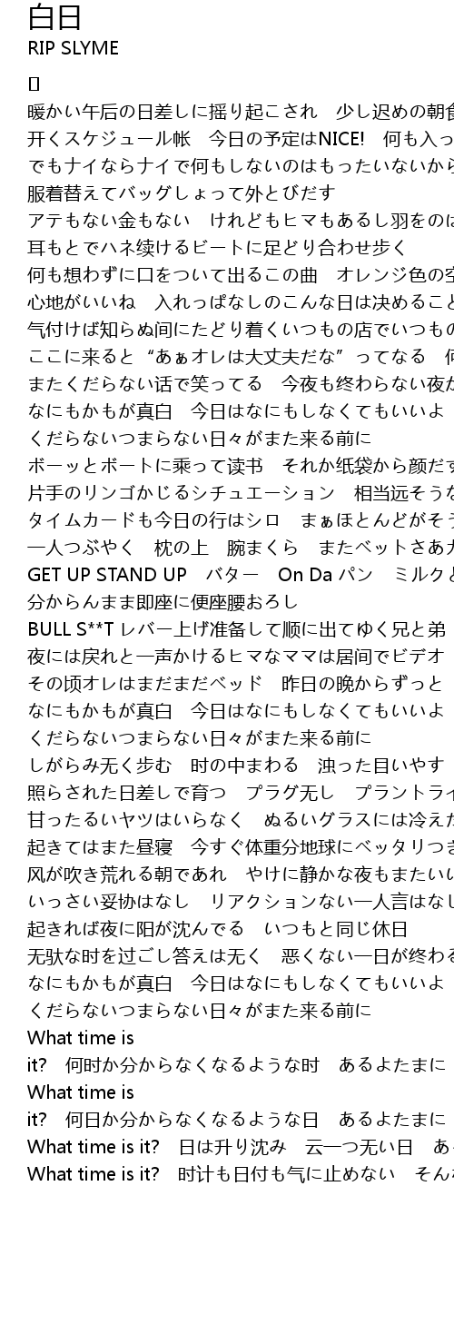 | What time is it? 何日か分からなくなるような日 あるよたまに | |